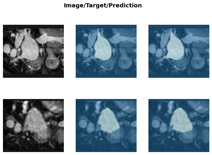 learn.show_results(anatomical_plane=0, dl=test_dl)