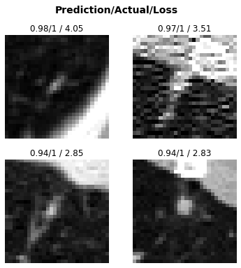 interp.plot_top_losses(k=4, anatomical_plane=2)